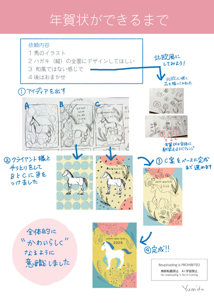 年賀状のアイディアから完成までのプロセスをまとめてみました。